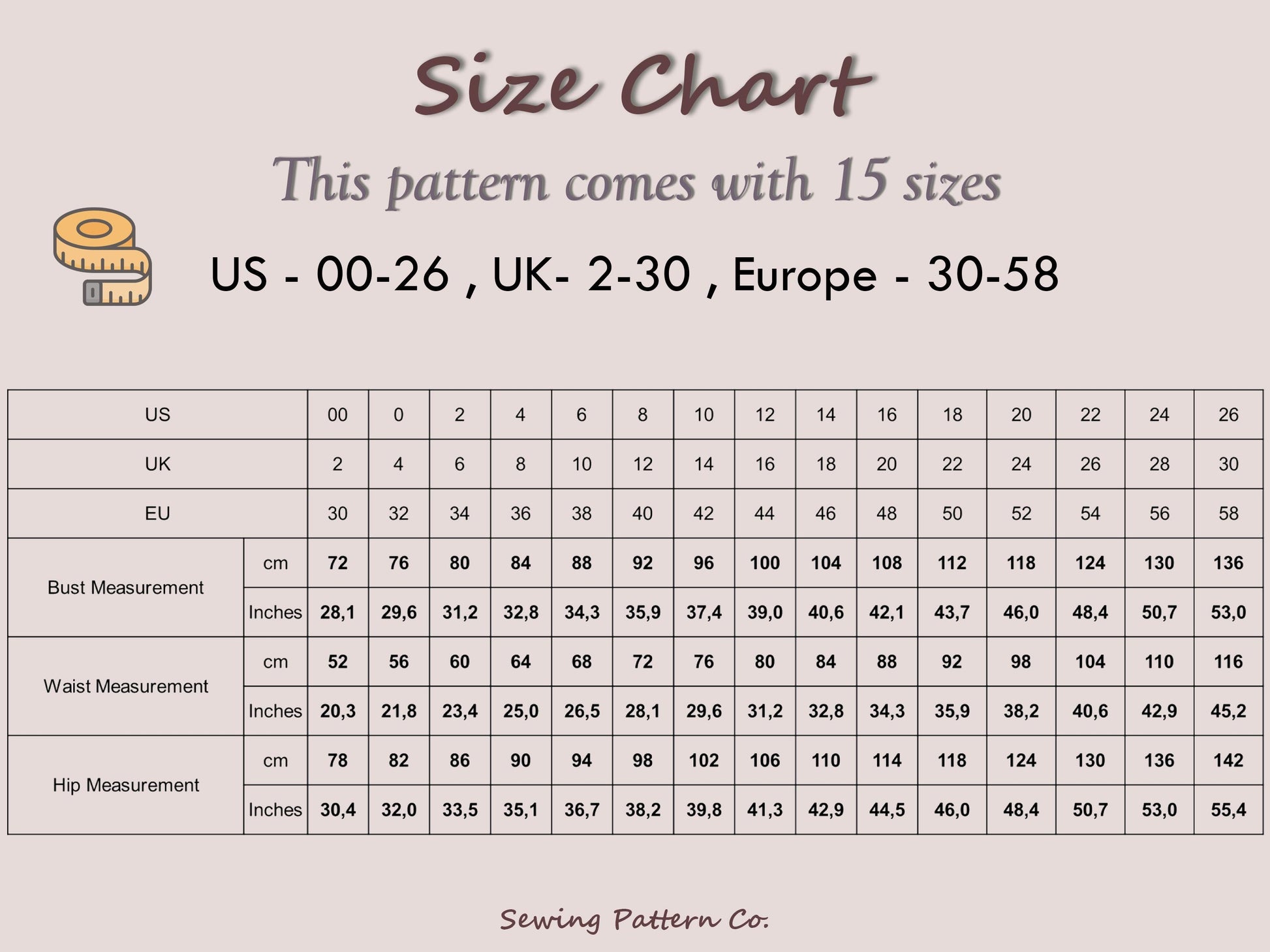 đ 15 Sizes: XXXS to 5XL (US 00â26, UK 2â30, EU 30â58)