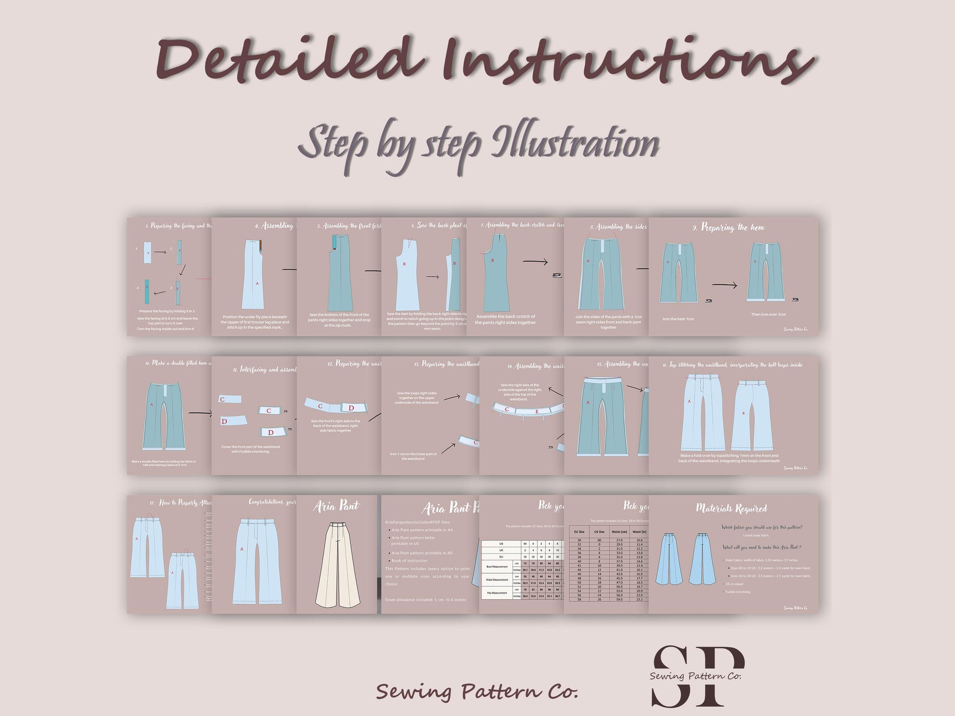 ARIA Pant Sewing Pattern | Wide Leg High Waist Trousers PDF | Women sewing pattern | Women’s Digital Pants Pattern | 15 sizes