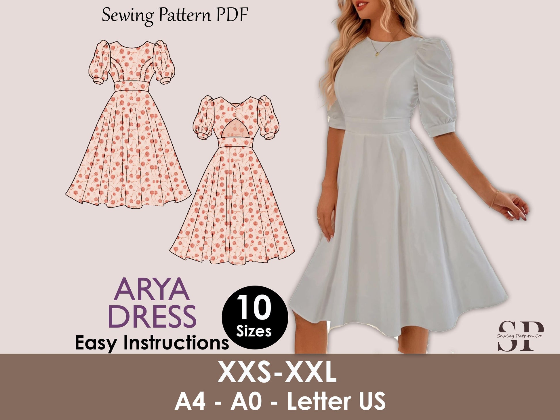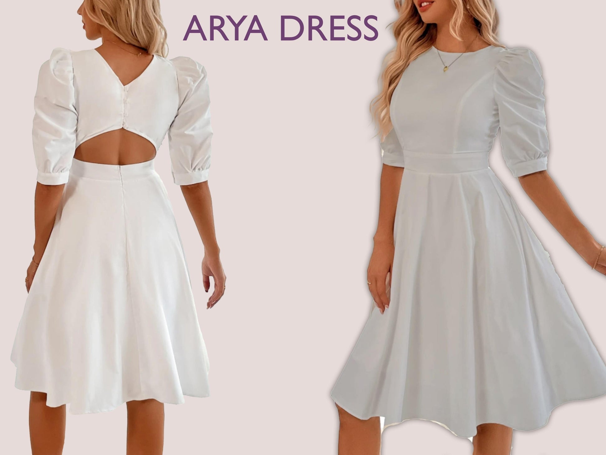 ARYA dress- Midi backless dress | puffy sleeve | | Women dress pattern | wedding dress prom| backless fairy dress| 10 sizes sewing pattern