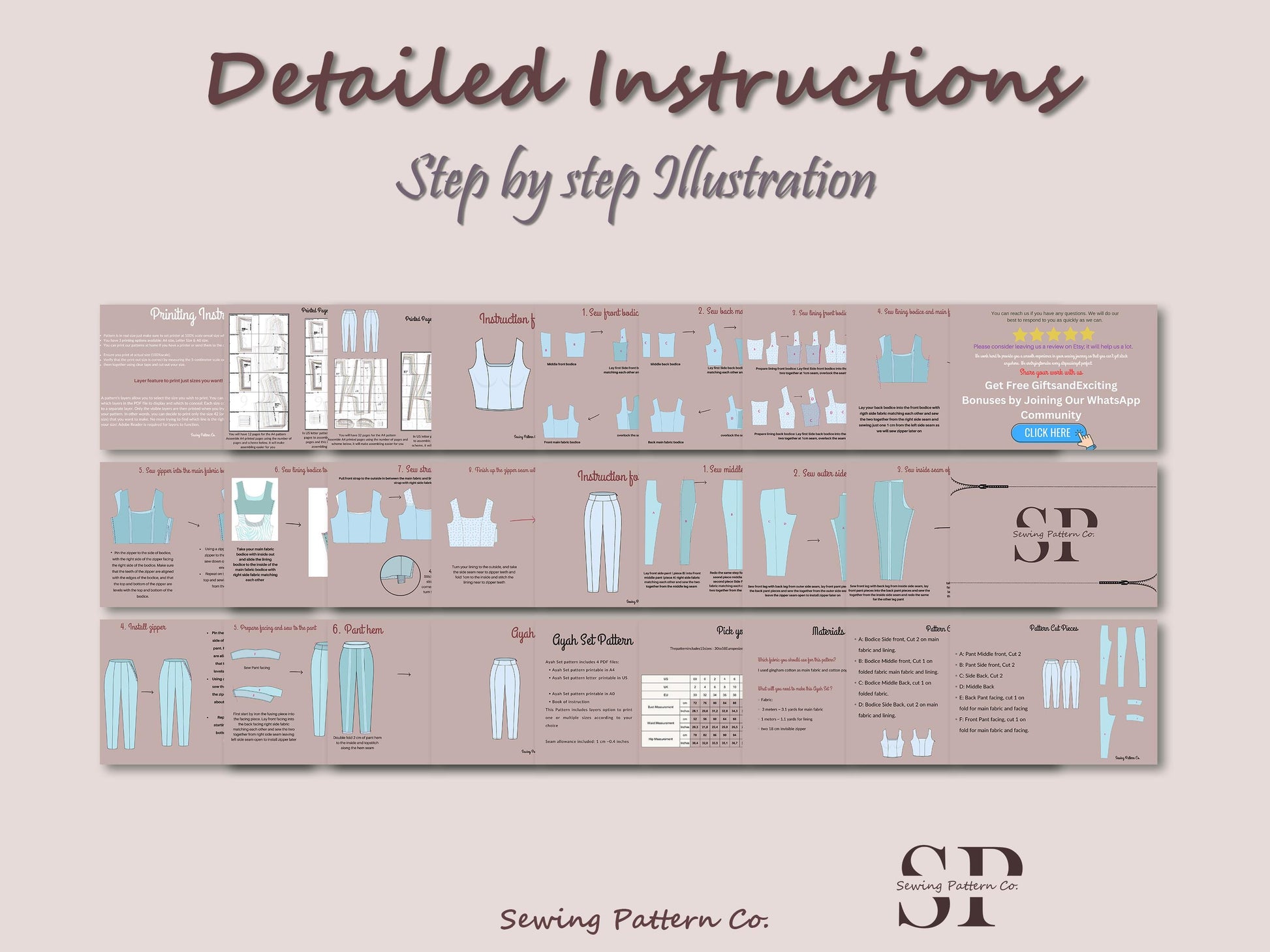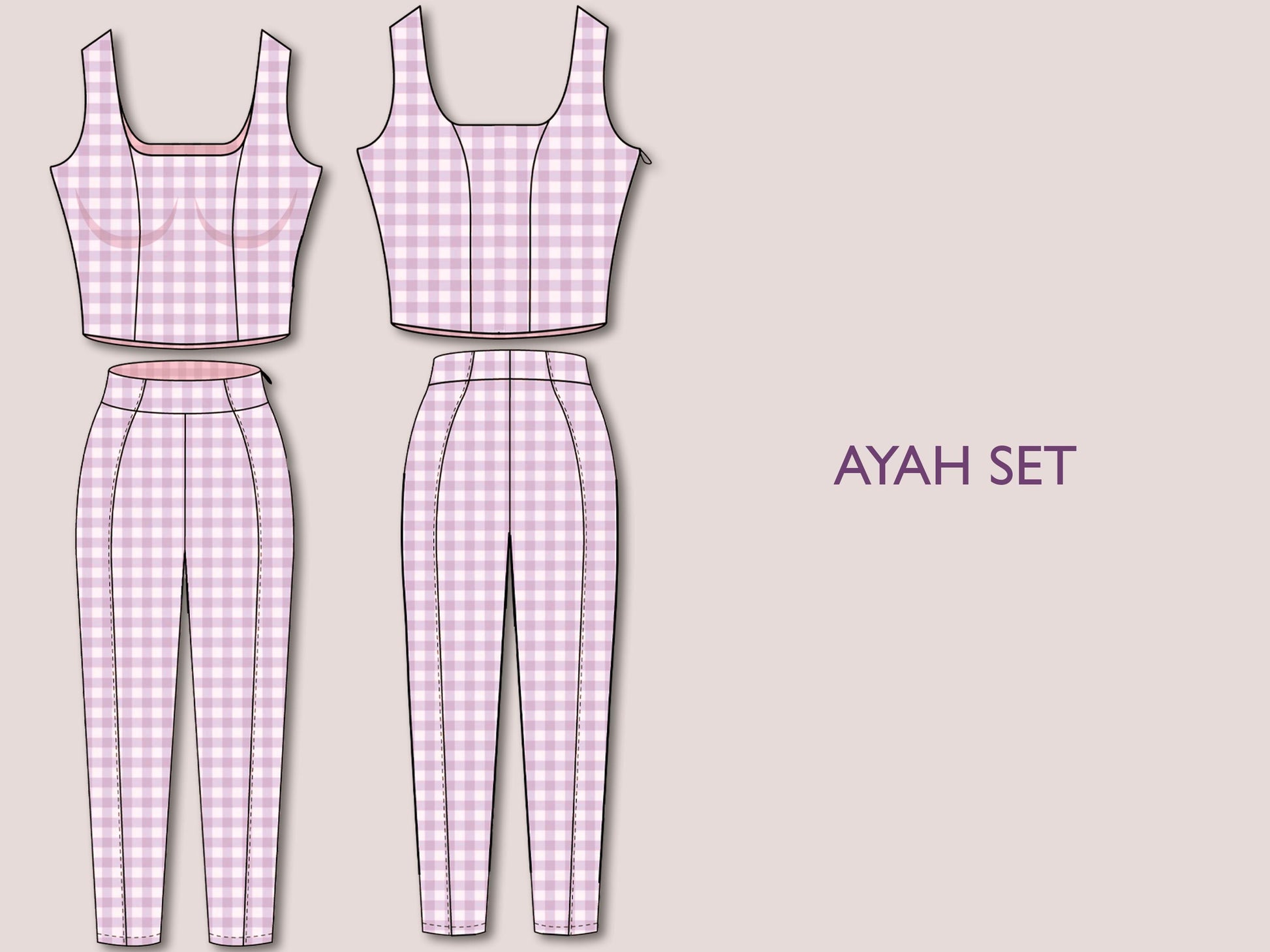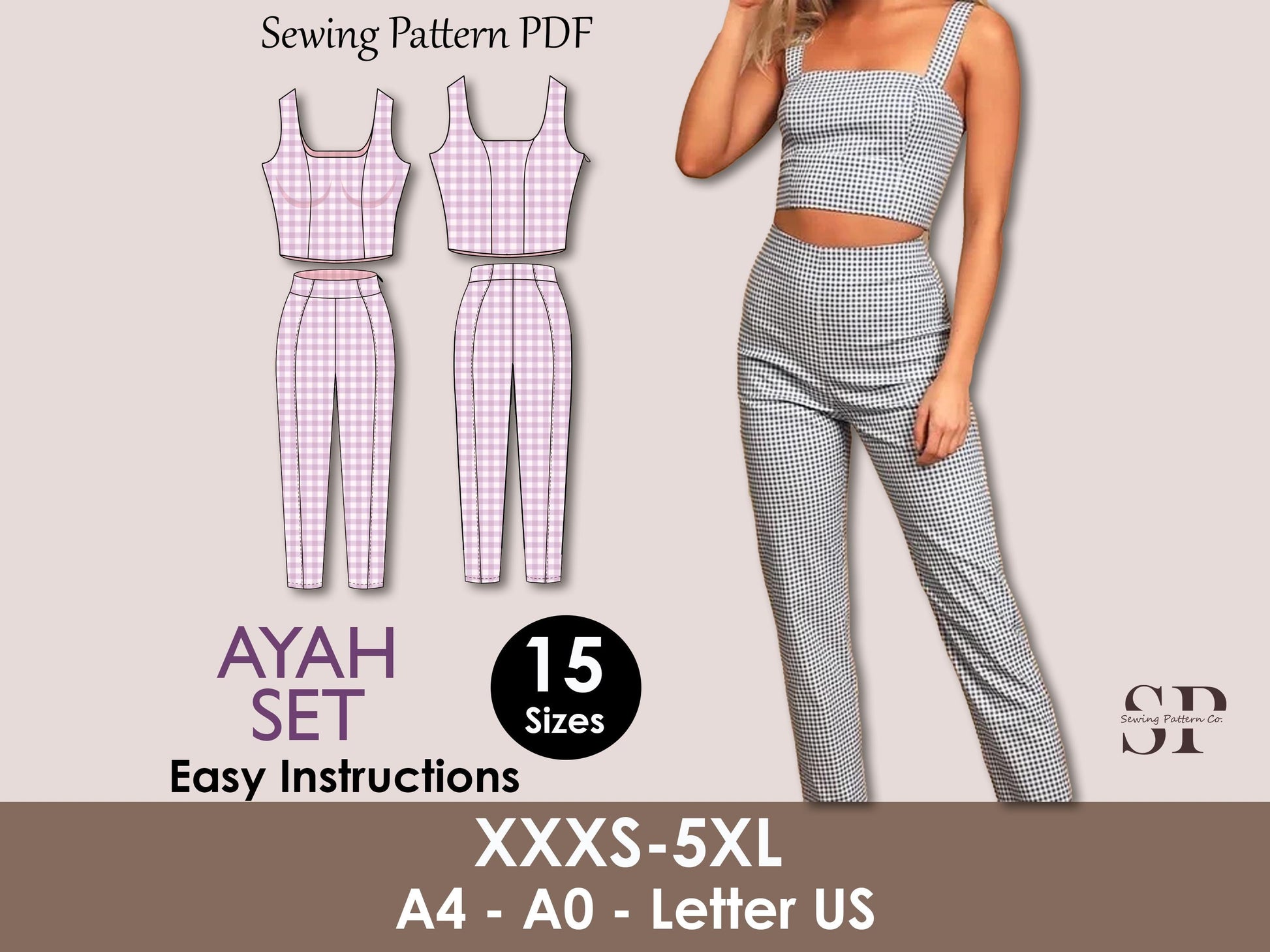 AYAH Set - crop top pattern | fitted pant pattern | Sleeveless, ankle pant| Women summer set sewing Pattern PDF casual outfit, corset dress