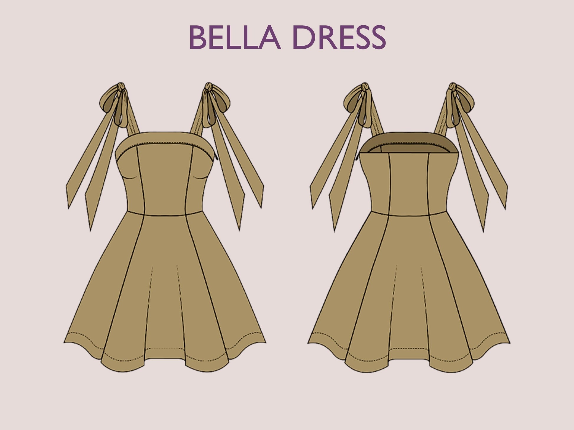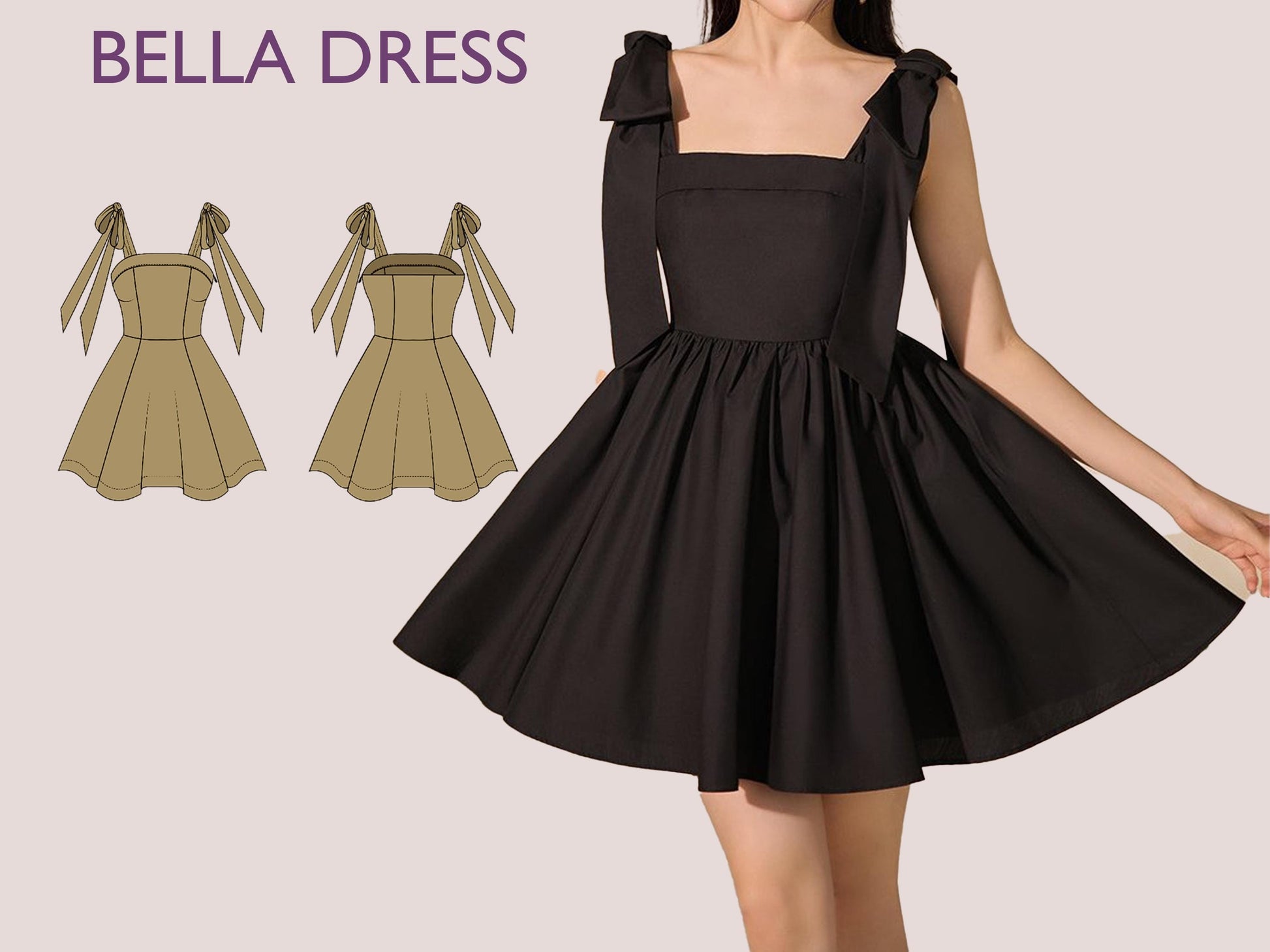 Bow straps dress pattern | Women dress sewing pattern | Bow Mini dress sewing pattern | PDF Sewing pattern | 15-sizes | prom dress pattern