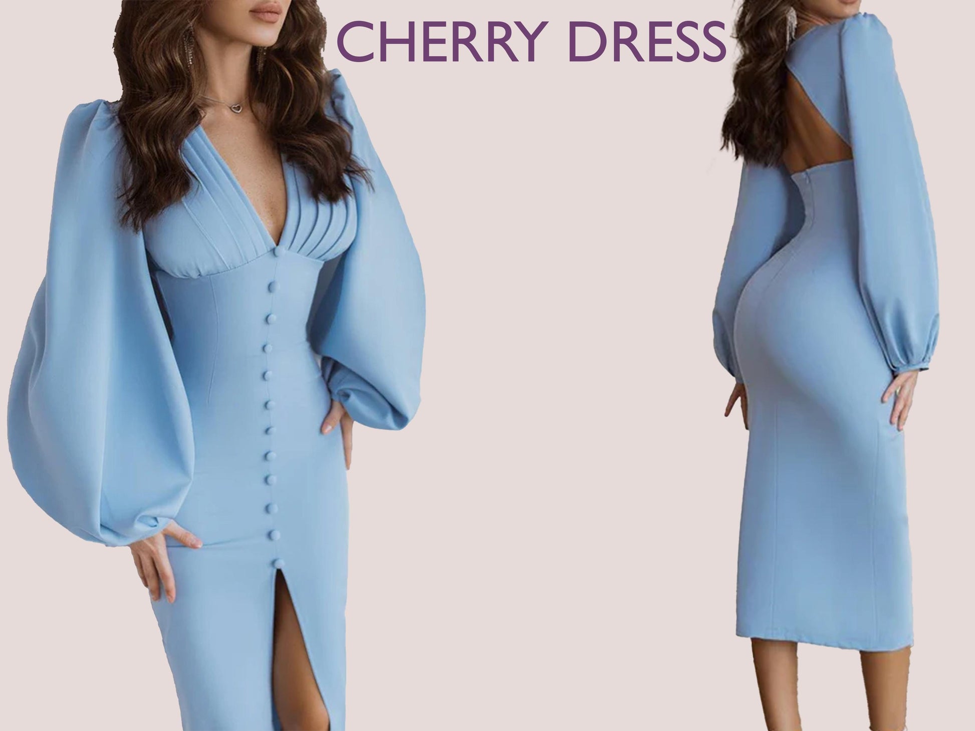 CHERRY Dress - puffy sleeve dress| Long Sleeve | Women dress pattern| Stylish| one piece | Fancy| V neck dress