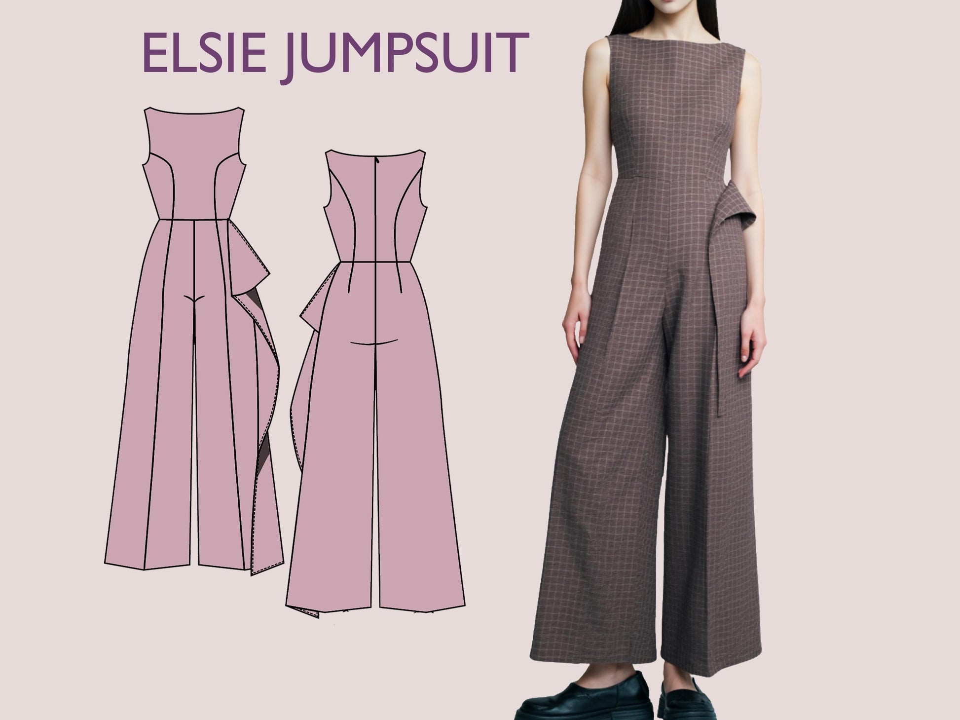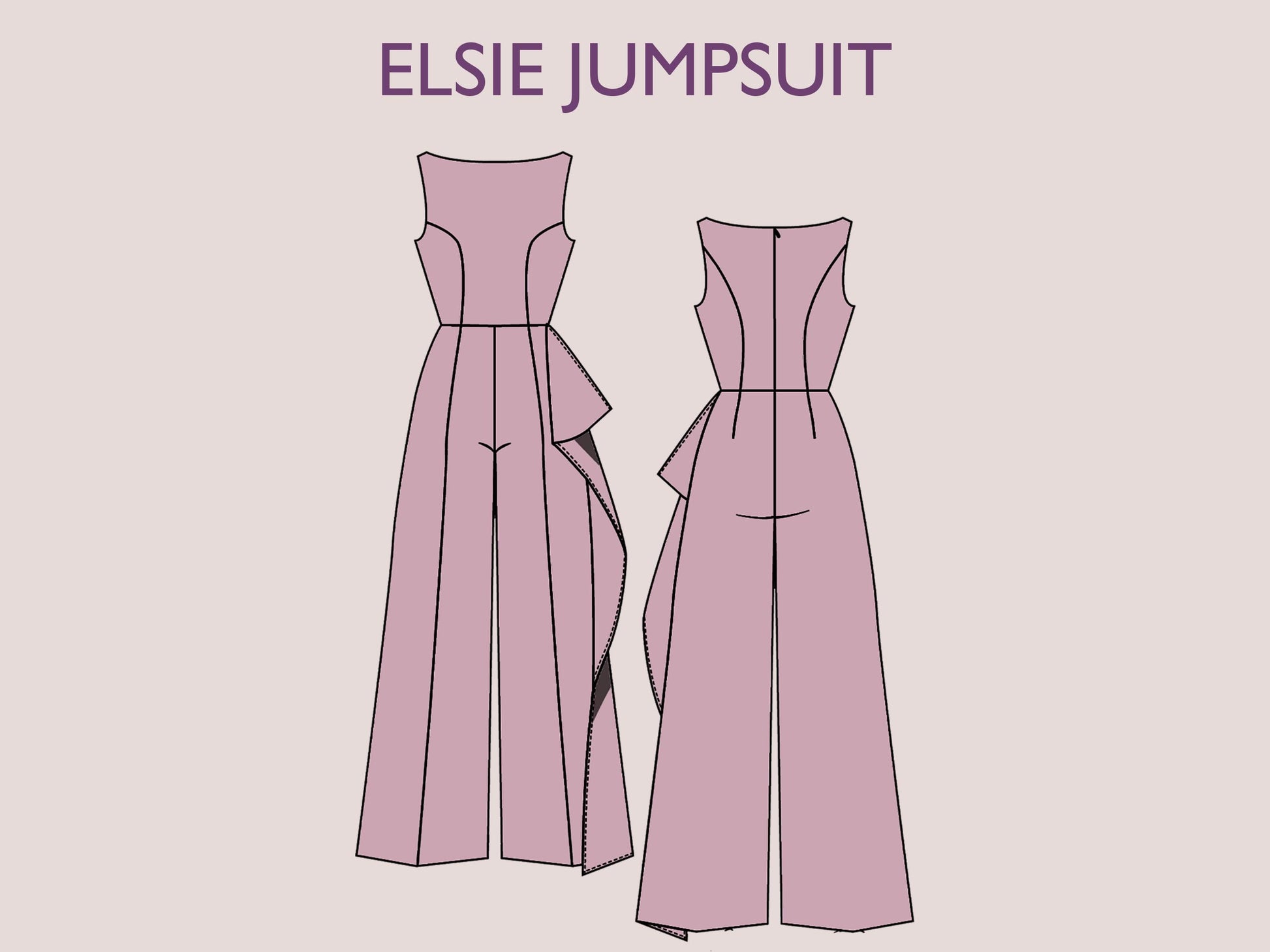 ELSIE Jumpsuit - Broad pant suit | Closed Neckline | Women long jumpsuit pattern| Sleeveless , Long dress| sewing Pattern PDF