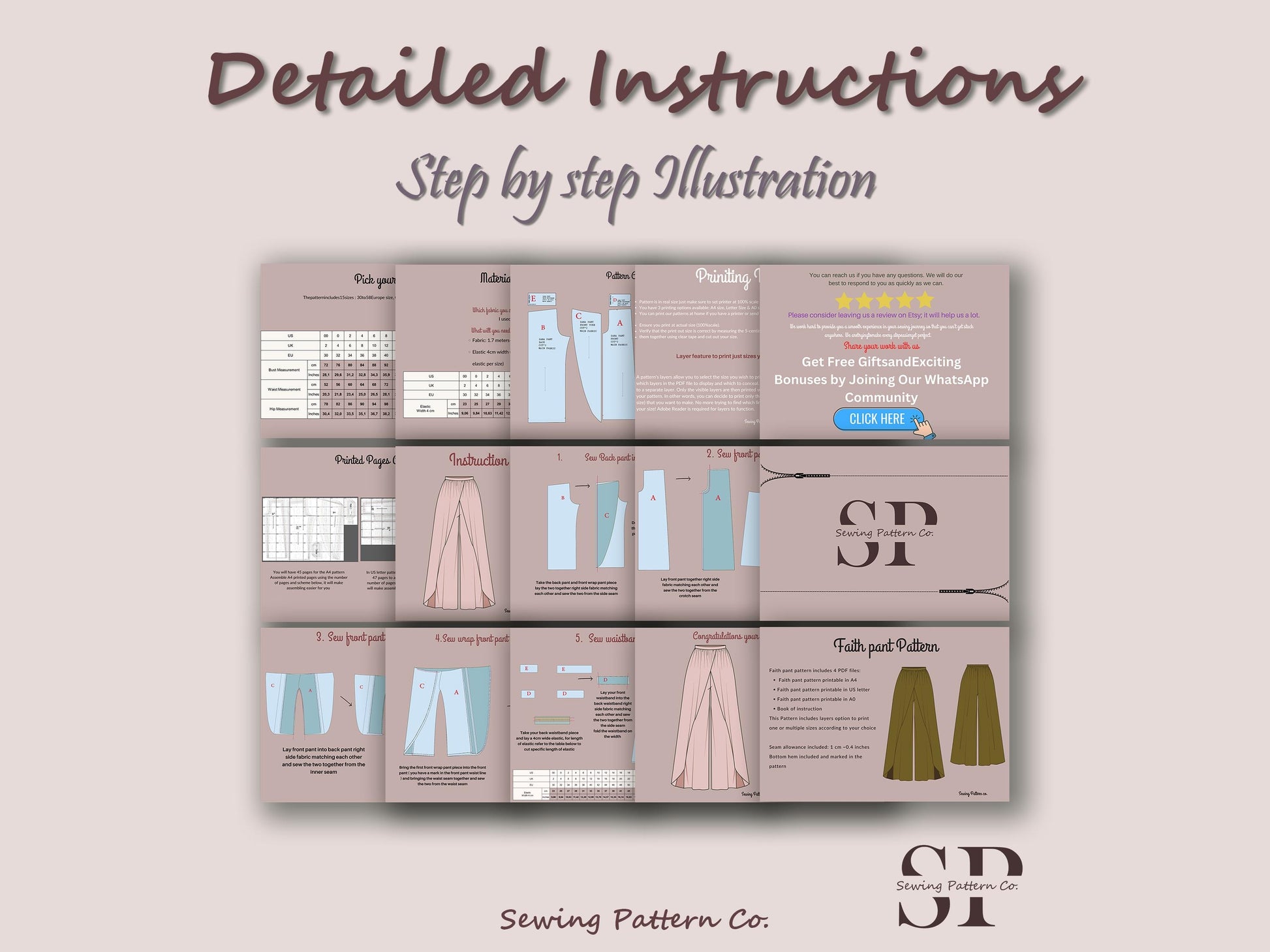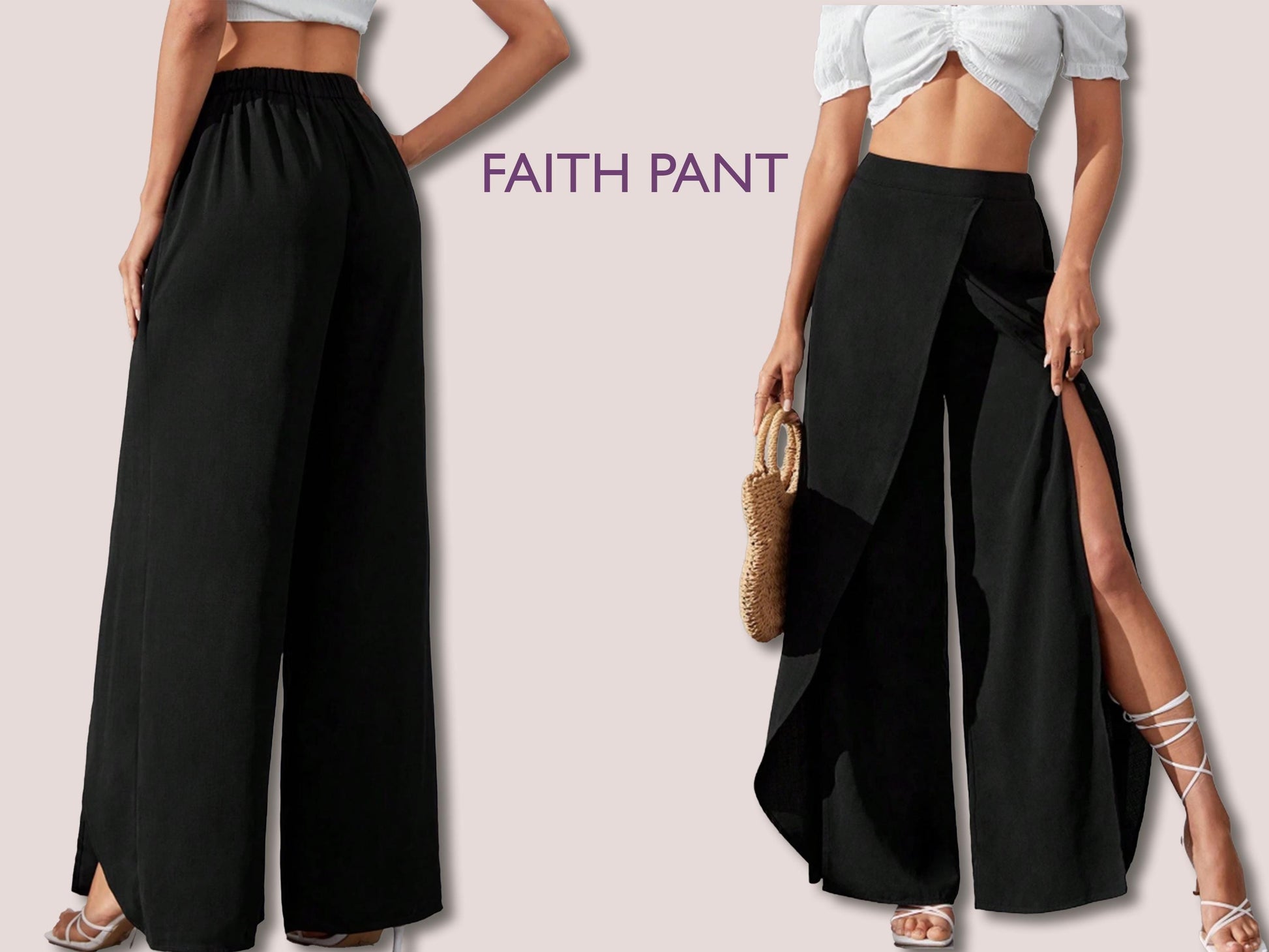 FAITH Pant - women wrap pant | women pant sewing PDF | slit pant | Women’s Comfy Pant | Wide leg pant | 15 Sizes| Digital trouser long pant