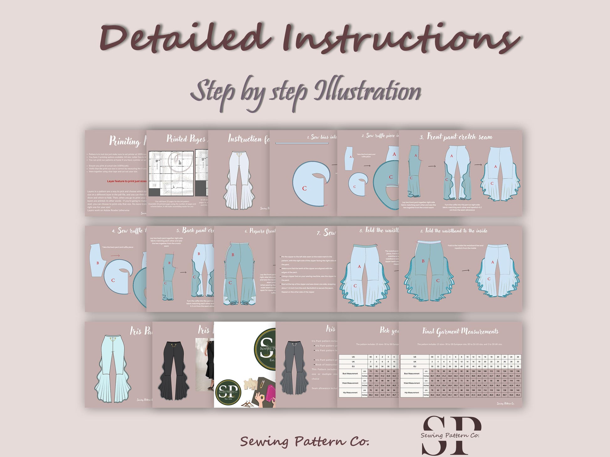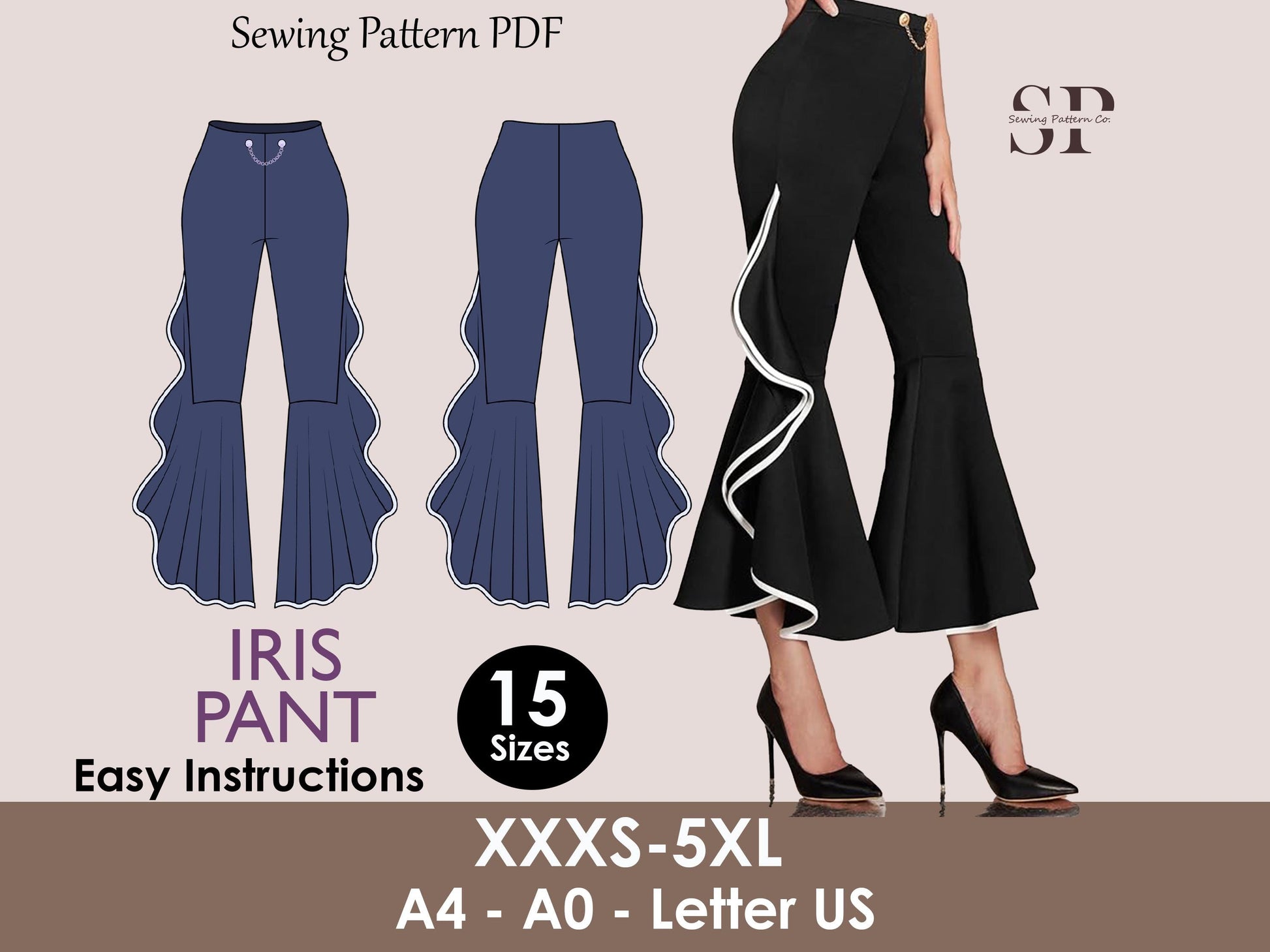 IRIS Pant Sewing Pattern PDF | High Waist Wide-Leg Trousers | 15 Sizes | Digital Download | stylish, party wear, women Sewing Pattern