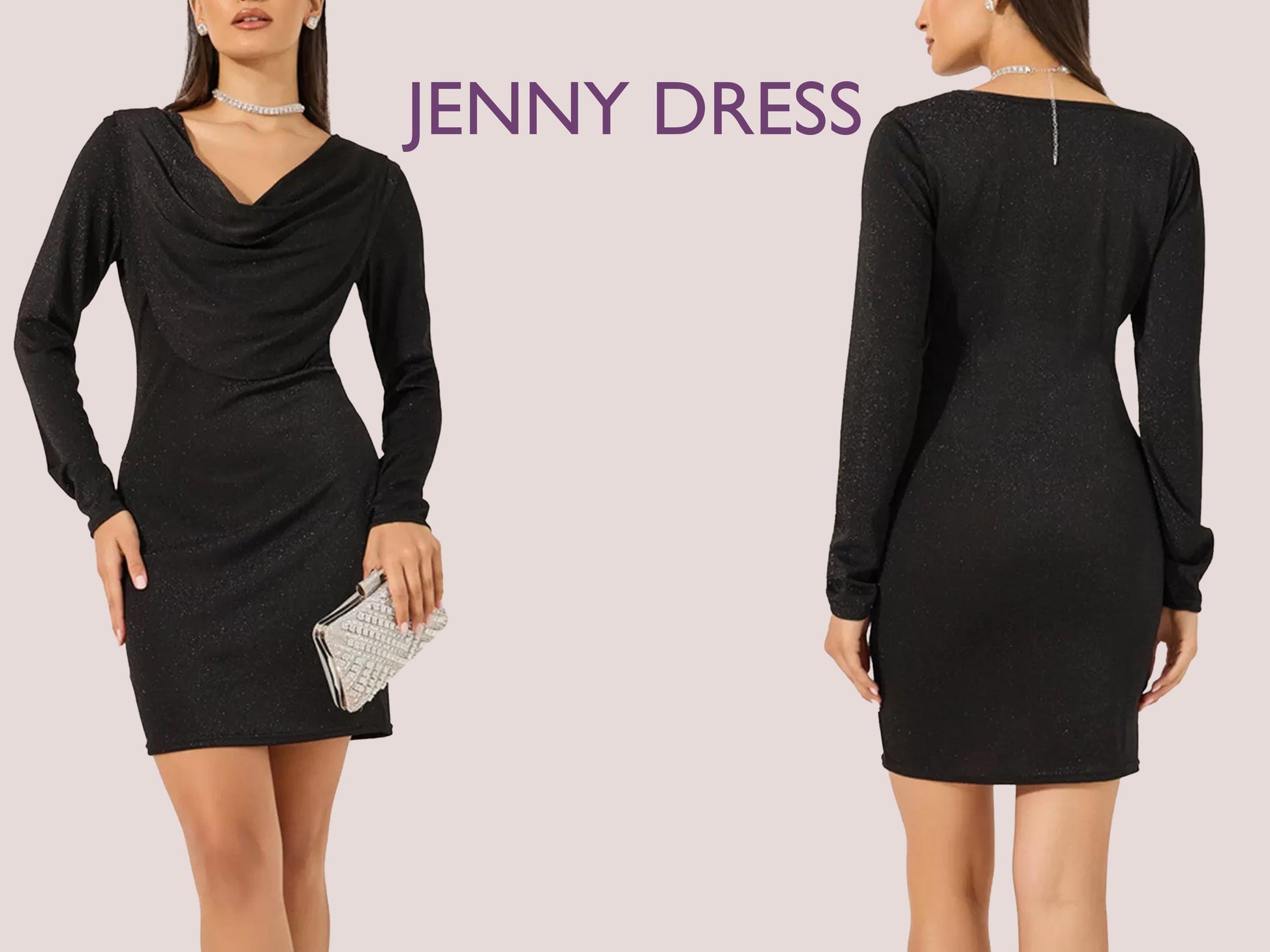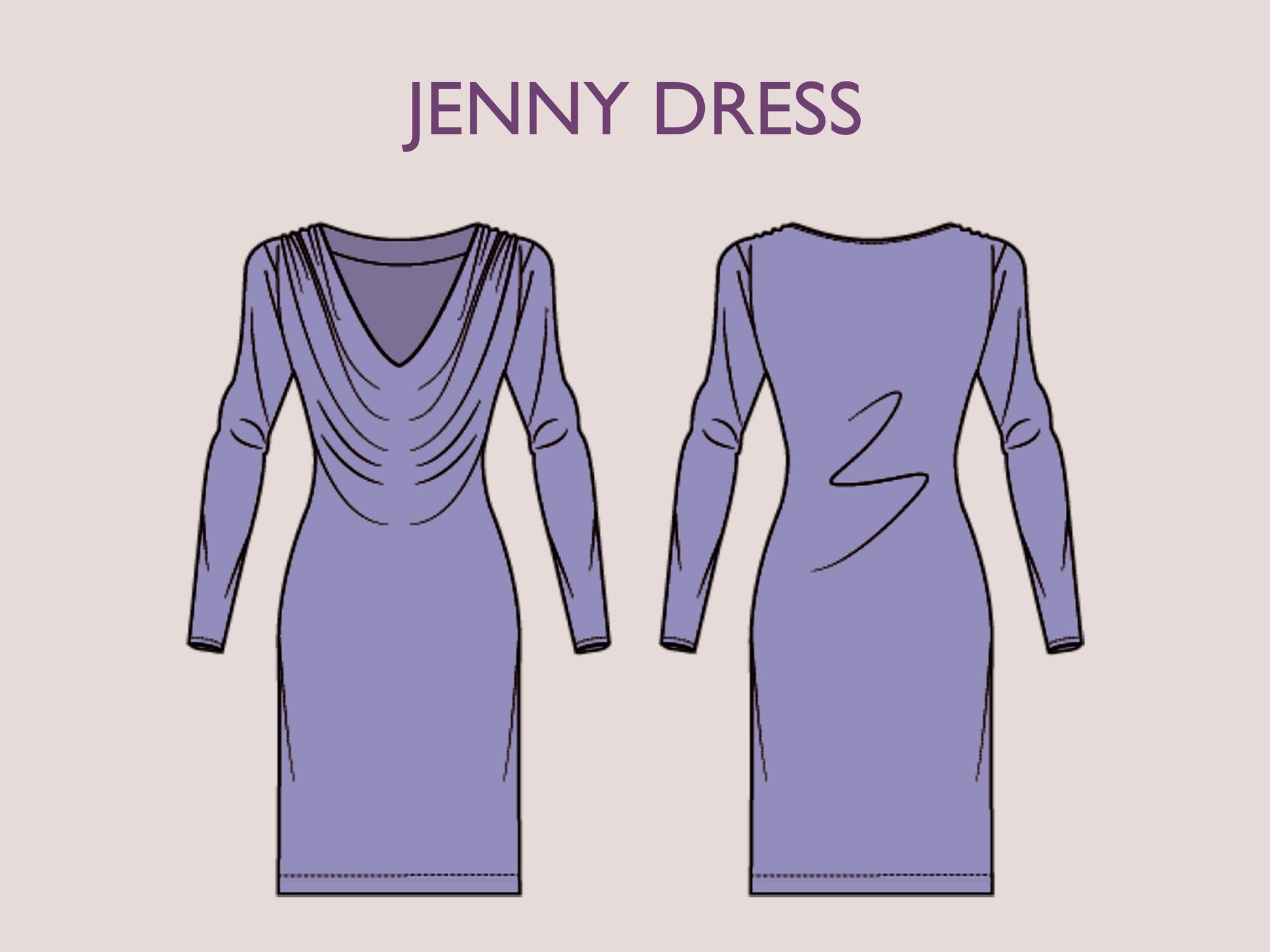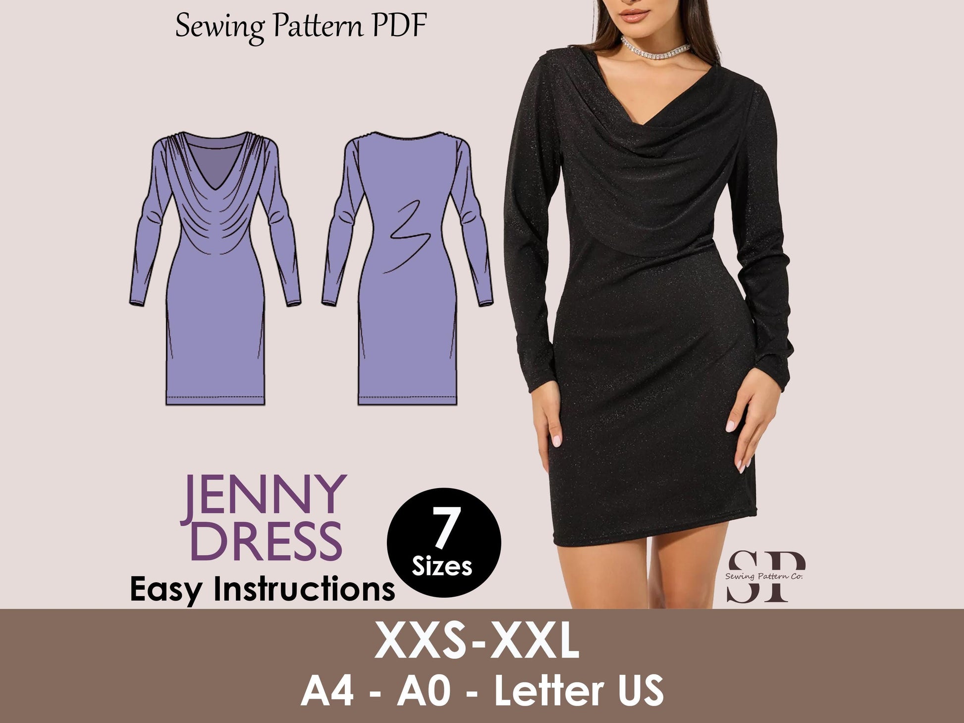🎉 JENNY Dress – Cowl Neck Long Sleeve Dress Sewing Pattern (Digital PDF – 7 Sizes XXS to XXL)