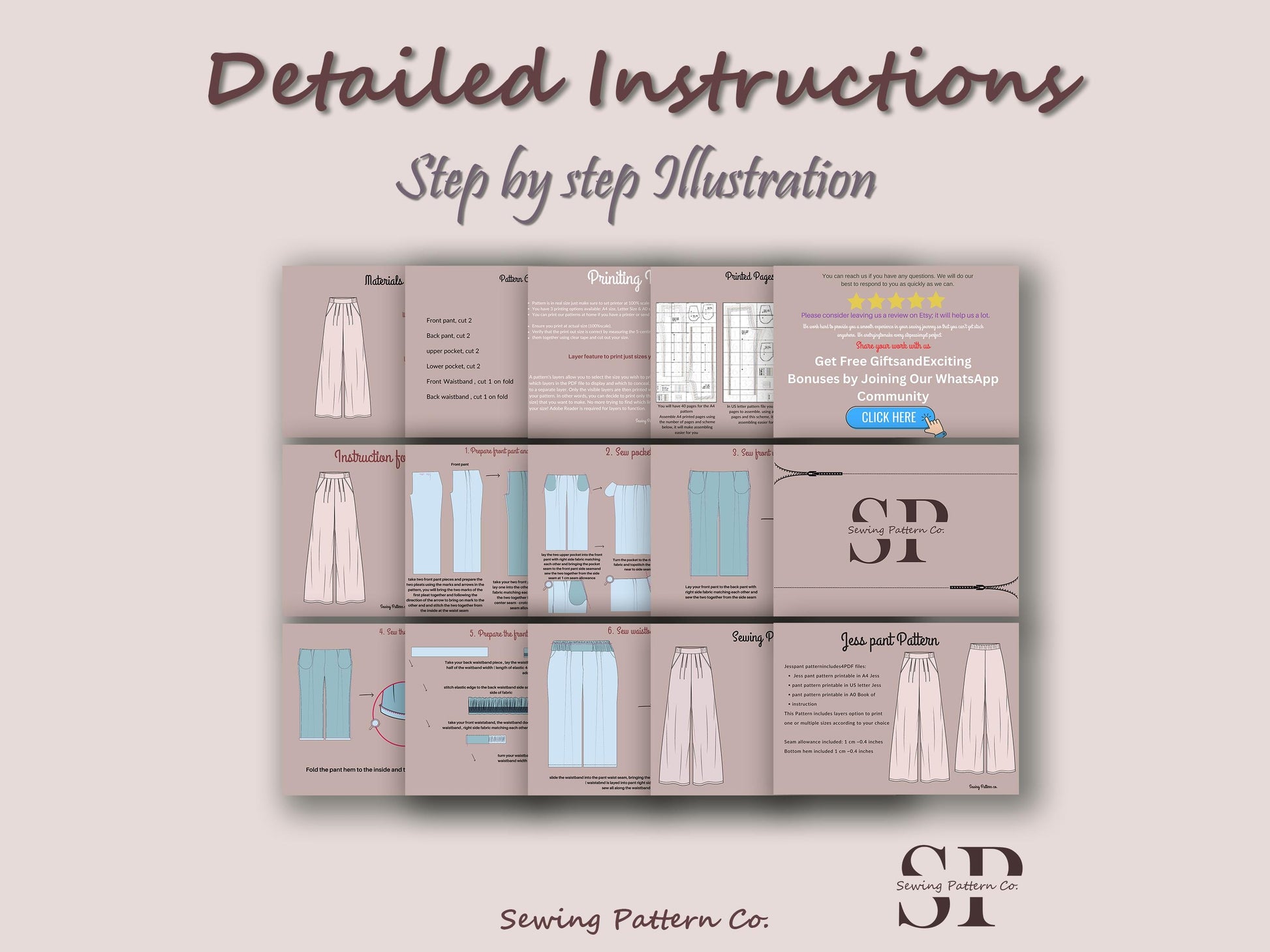Create your own elegant and comfortable pleated pants with the JESS Pant Sewing Pattern! Designed for style and comfort, this wide-leg pant pattern features front pleats, side pockets, and an elastic back waistband for a flexible fit. Perfect for beginners and seasoned sewists alike, the pattern comes with easy-to-follow instructions and is available in 15 sizes (XXXS–5XL).