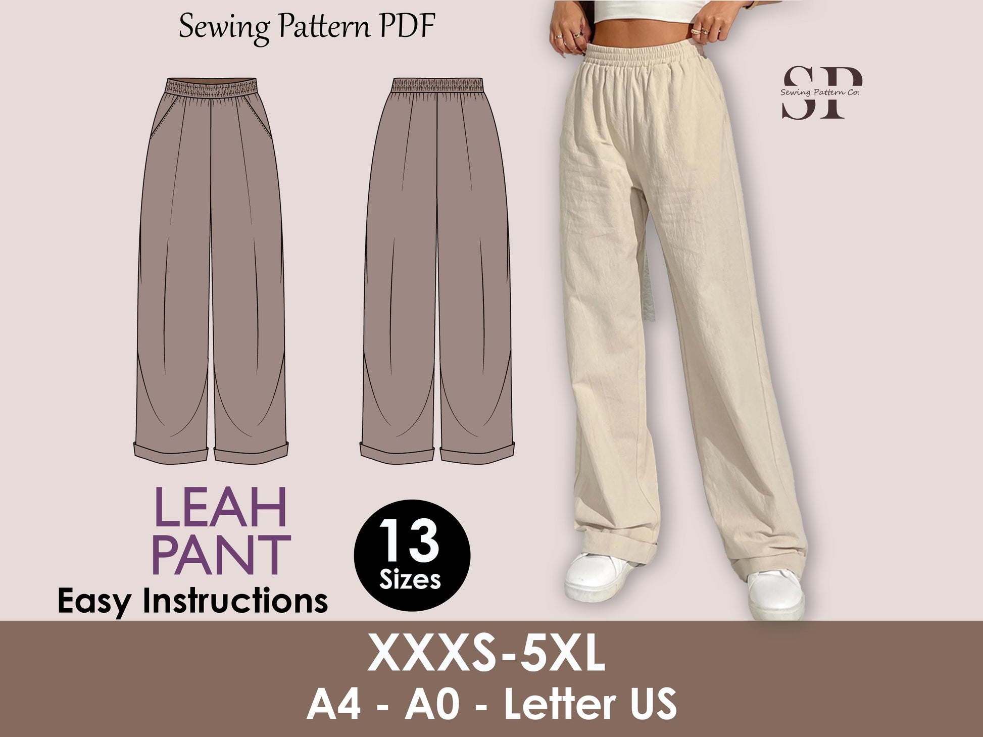 LEAH Pant PDF Sewing Pattern | Palazzo Pants | Elastic Waist | Wide Leg Pants | Digital Pattern | 13 Sizes XXXS–5XL| women sewing pattern