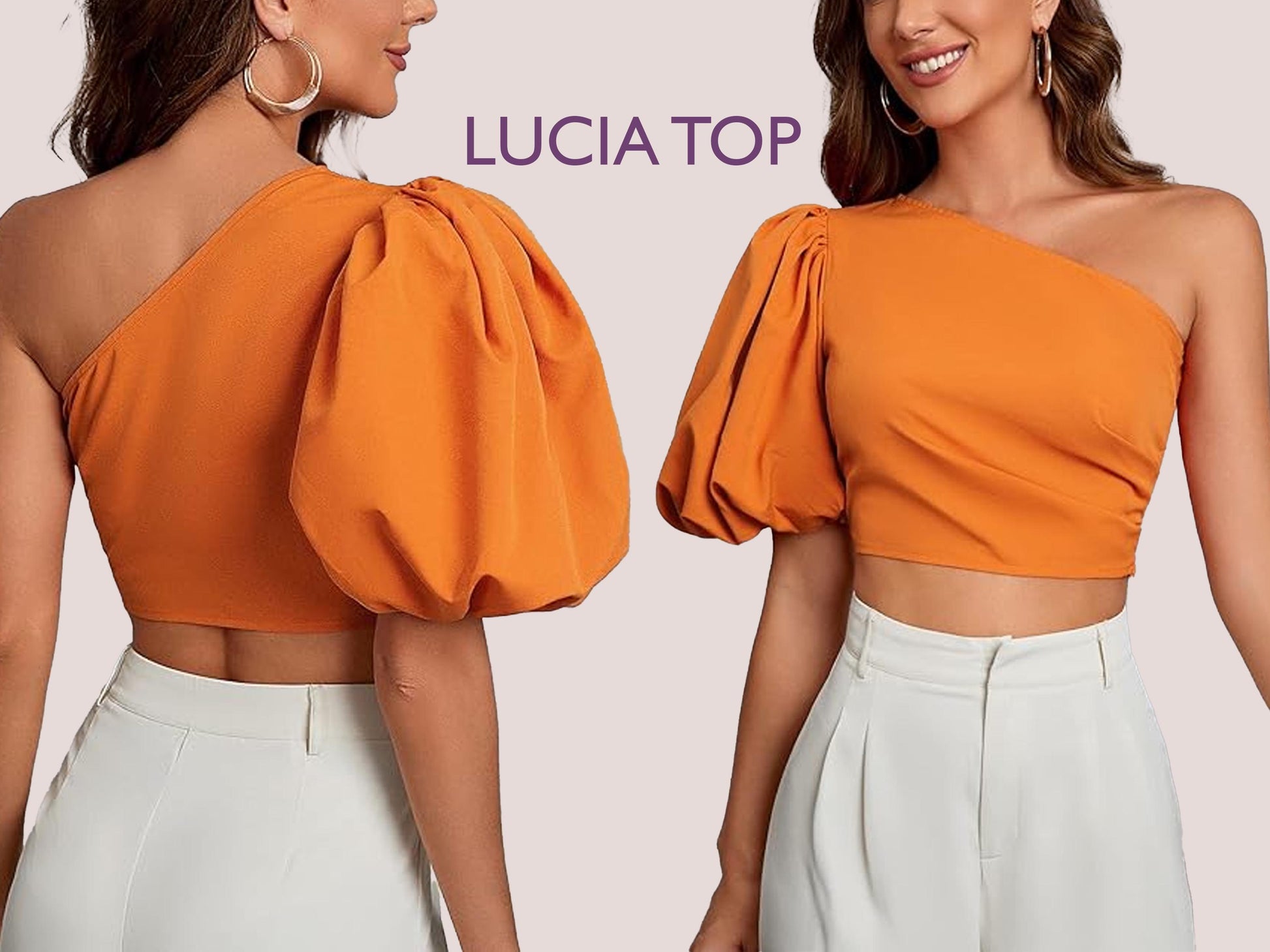 LUCIA Top - One shoulder puffy sleeve top | Top sewing pattern | Asymetrical summer top , short top, women Top digital sewing Pattern PDF