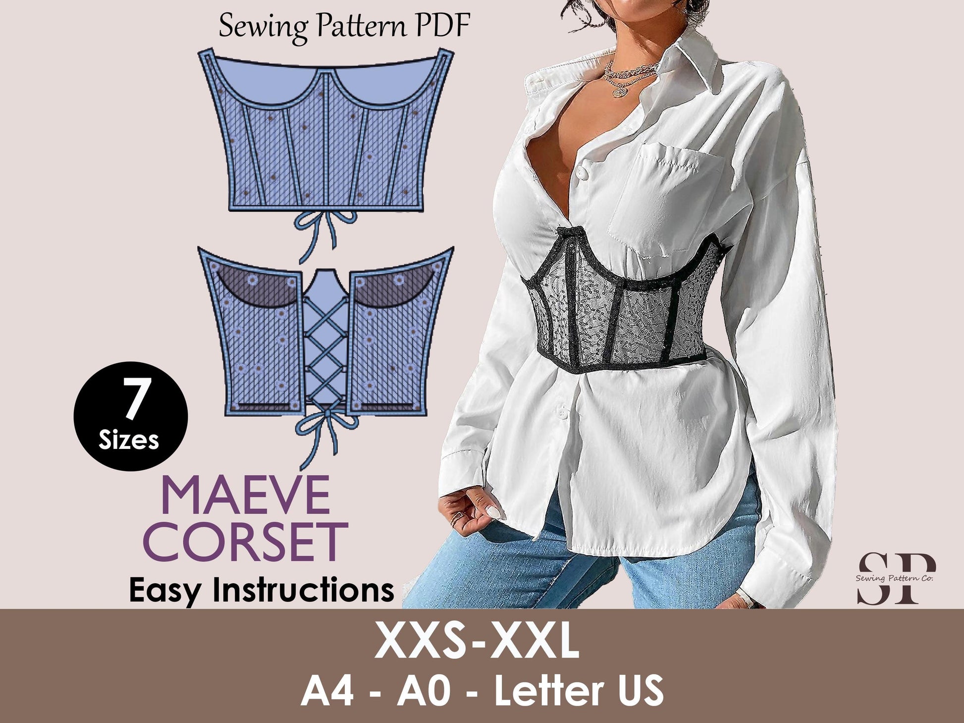 MAEVE Corset - Under bust Corset | corset sewing pattern | zigzag back thread tie , Bustier top, women Top digital sewing Pattern PDF