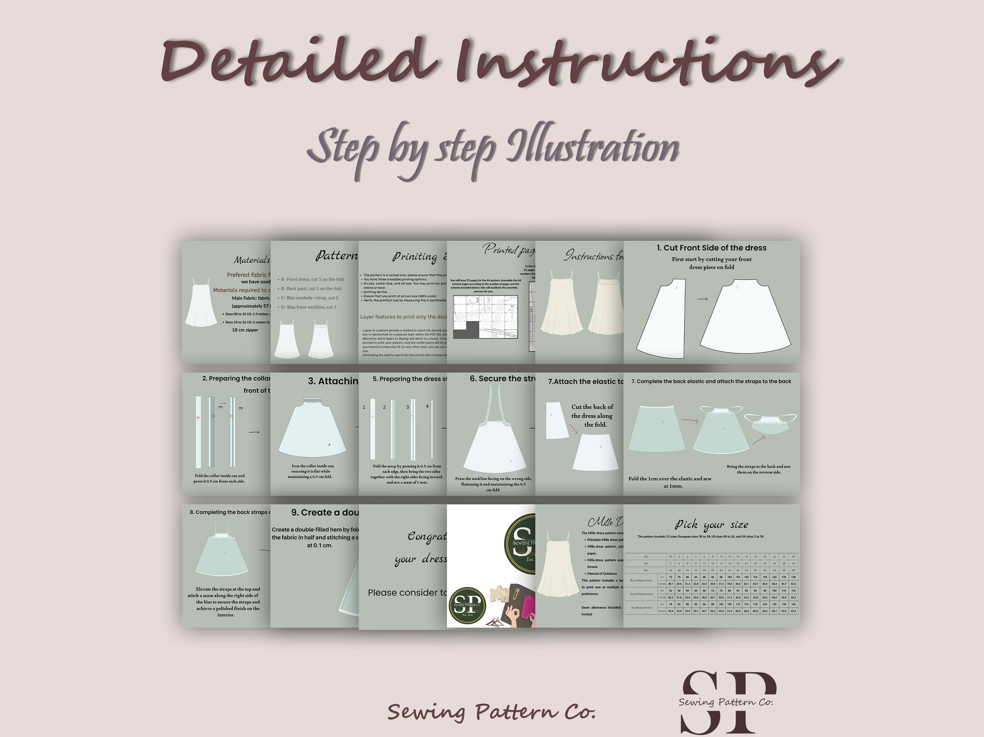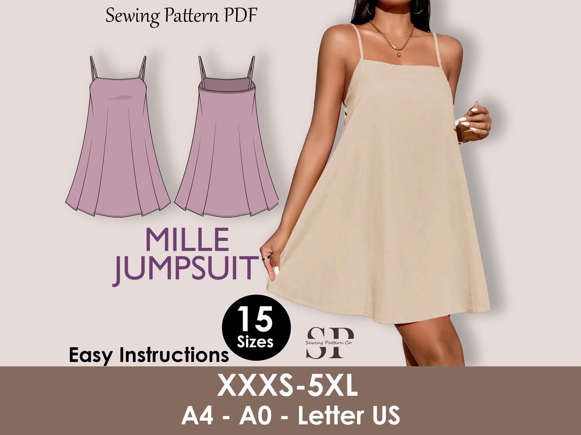 🧵 Mille Dress Sewing Pattern - Digital PDF (15 Sizes)