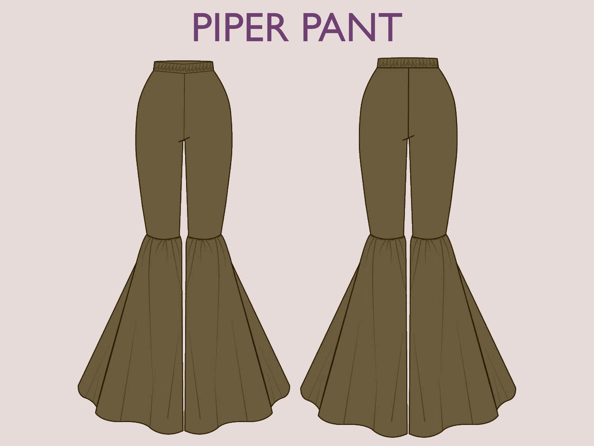 PIPER Pant Sewing Pattern | Wide leg bell bottom PDF | 70s, 90s pant| stretchy| casual| Women sewing pattern| Digital Pants Trousers