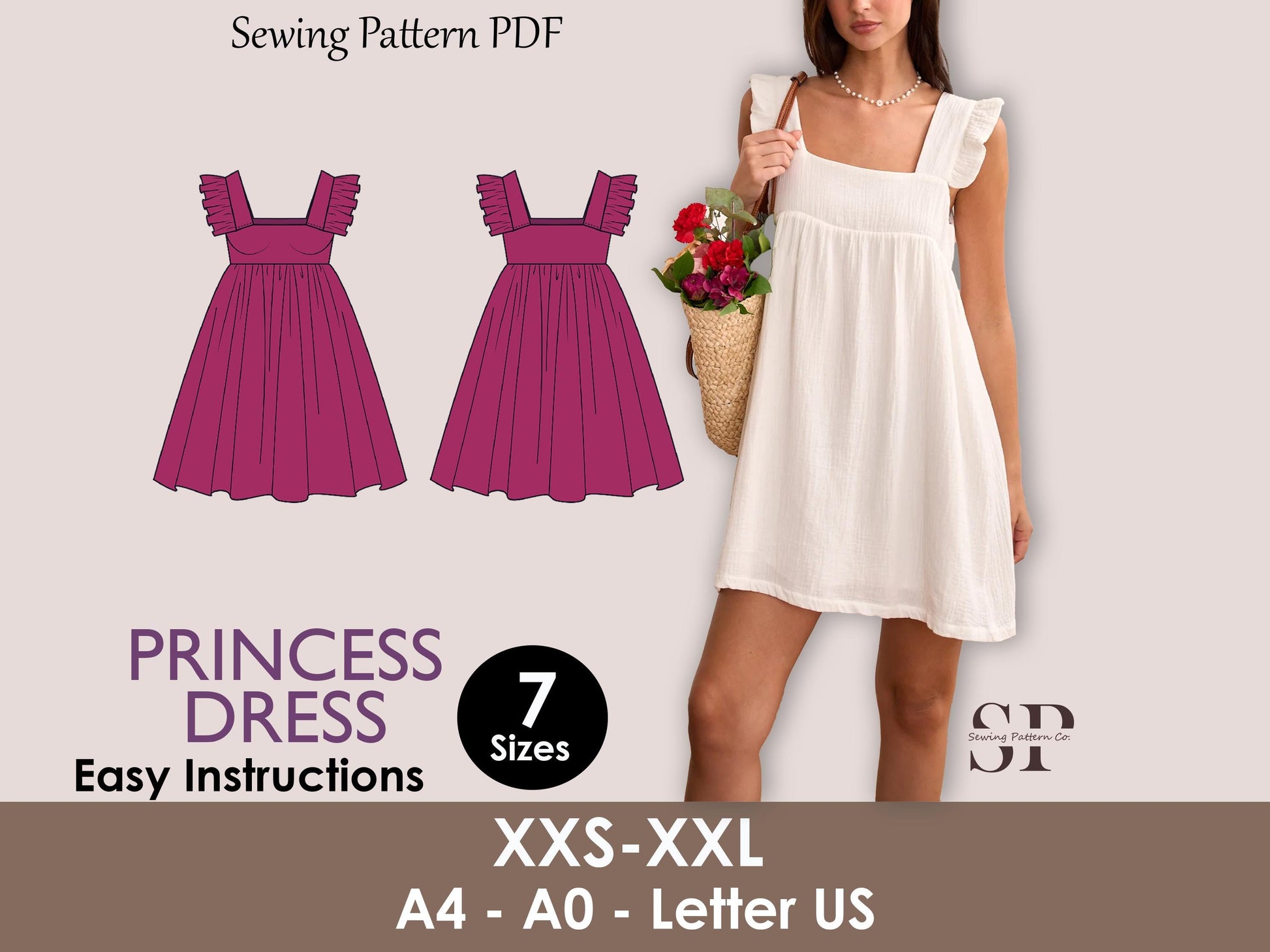 Princess Dress - Ruffled strap dress pattern | Women dress pattern| Short dress| one piece dress | summer dress pattern| Top pattern PDF