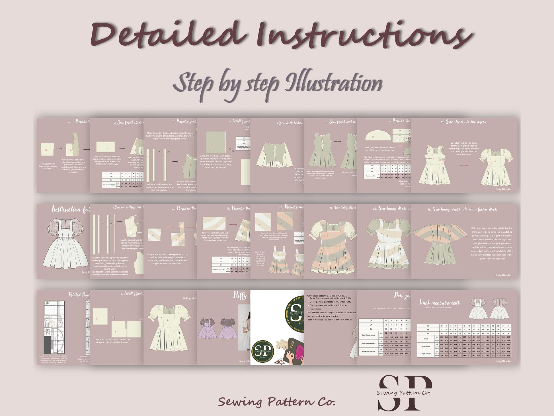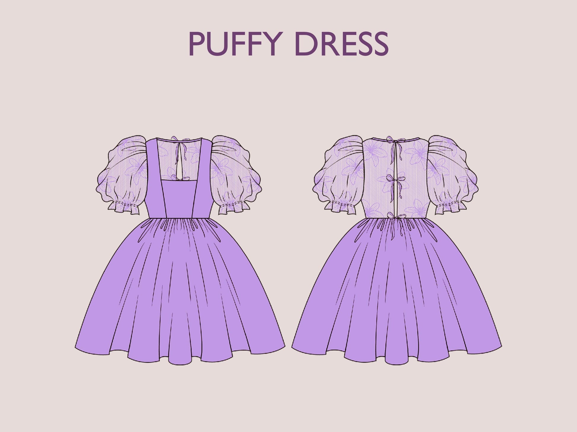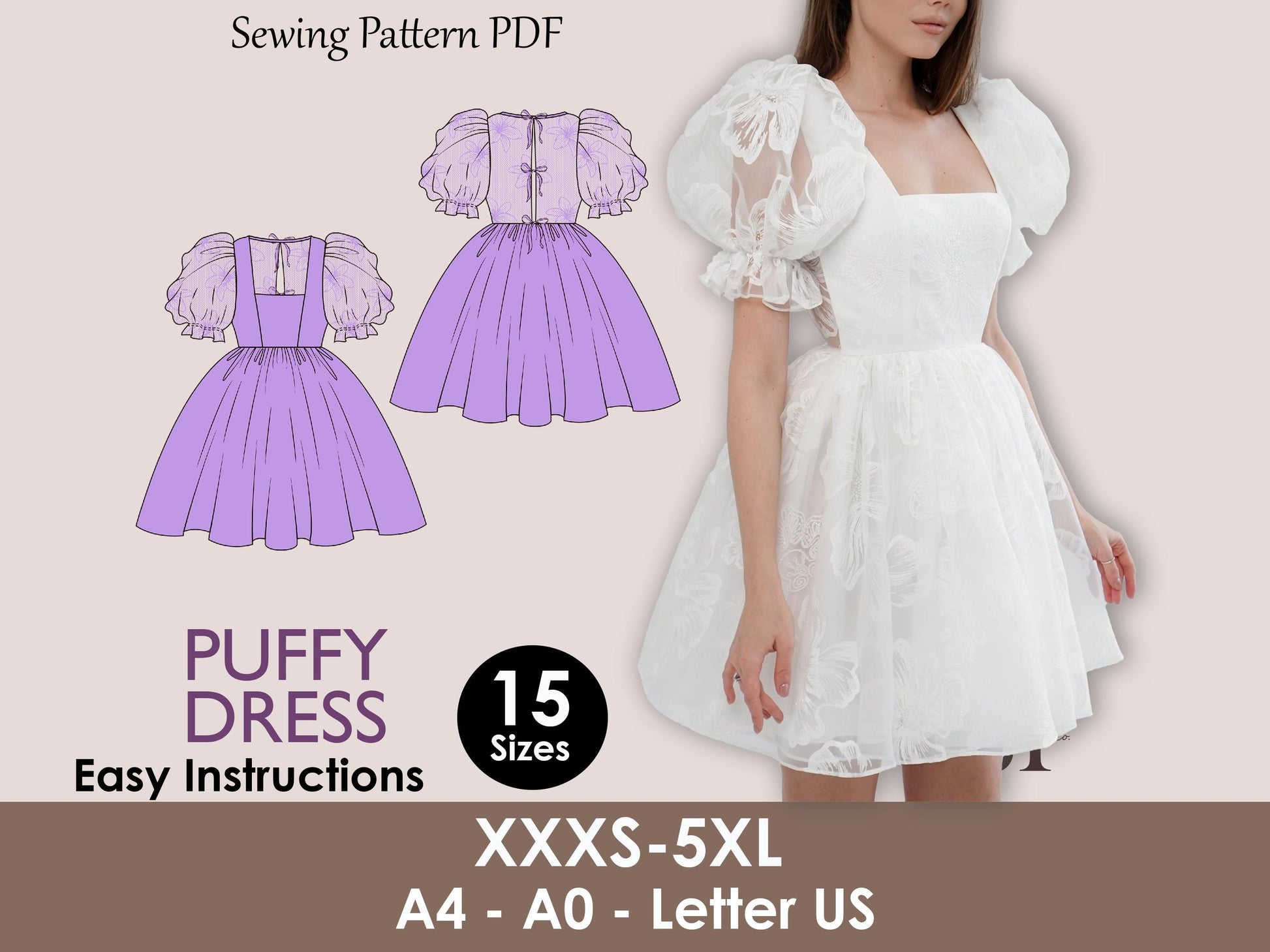 PUFFY Dress - Puffy Sleeve sewing pattern| Bridal dress| Women dress pattern| Short dress| one piece dress | Wedding dress pattern| Top