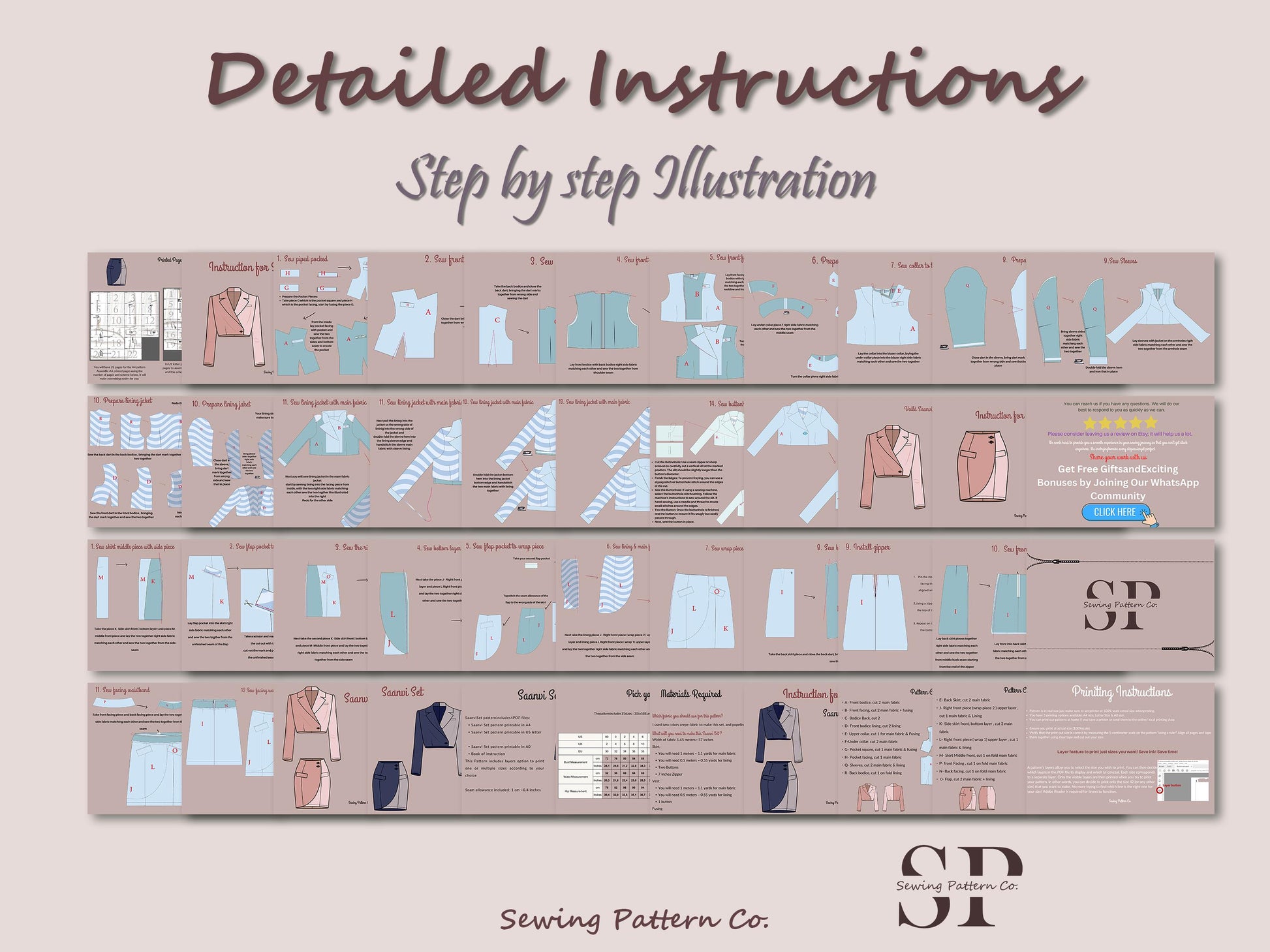 SAANVI Set - crop women blazer pattern| Wrap skirt pattern| Women co-ord set| Women suit, blazzer, jacket sewing Pattern PDF casual outfit