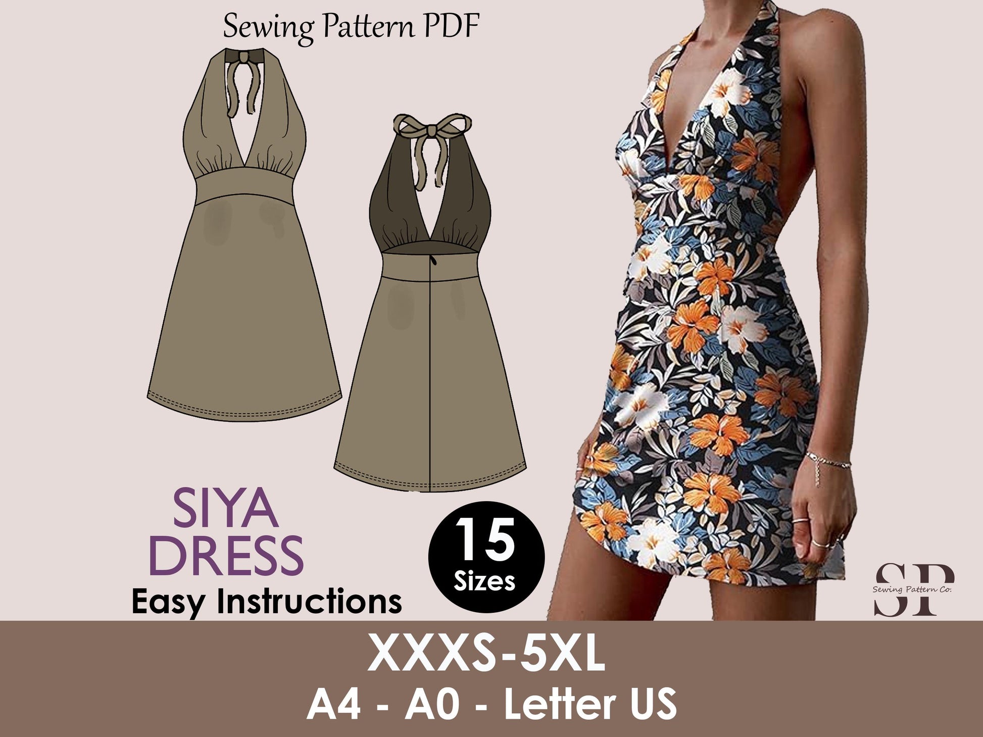 SIYA dress- backless bustier dress | Halter neck tie | deep v neck | Women summer dress pattern| sewing pattern bustier patron de couture