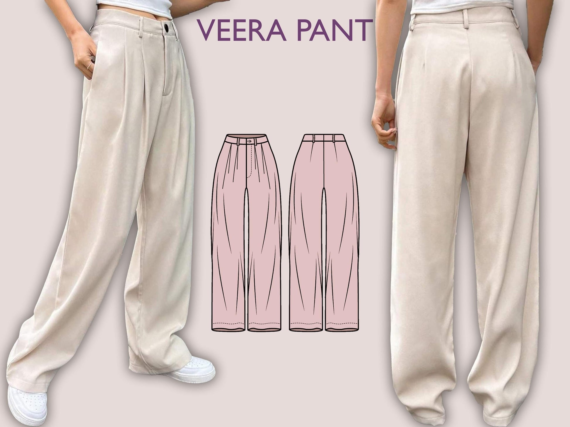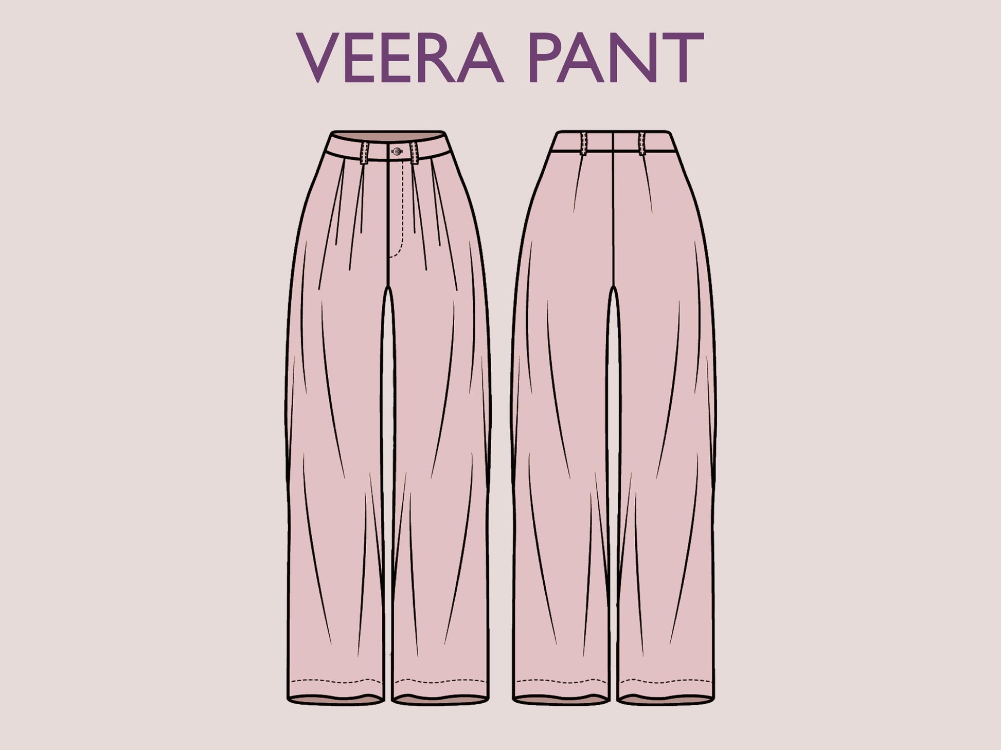 VEERA Pant Sewing Pattern | Wide classic | pleat pant | straight | casual| Elastic waist| Women sewing pattern| Digital Pants Trousers PDF
