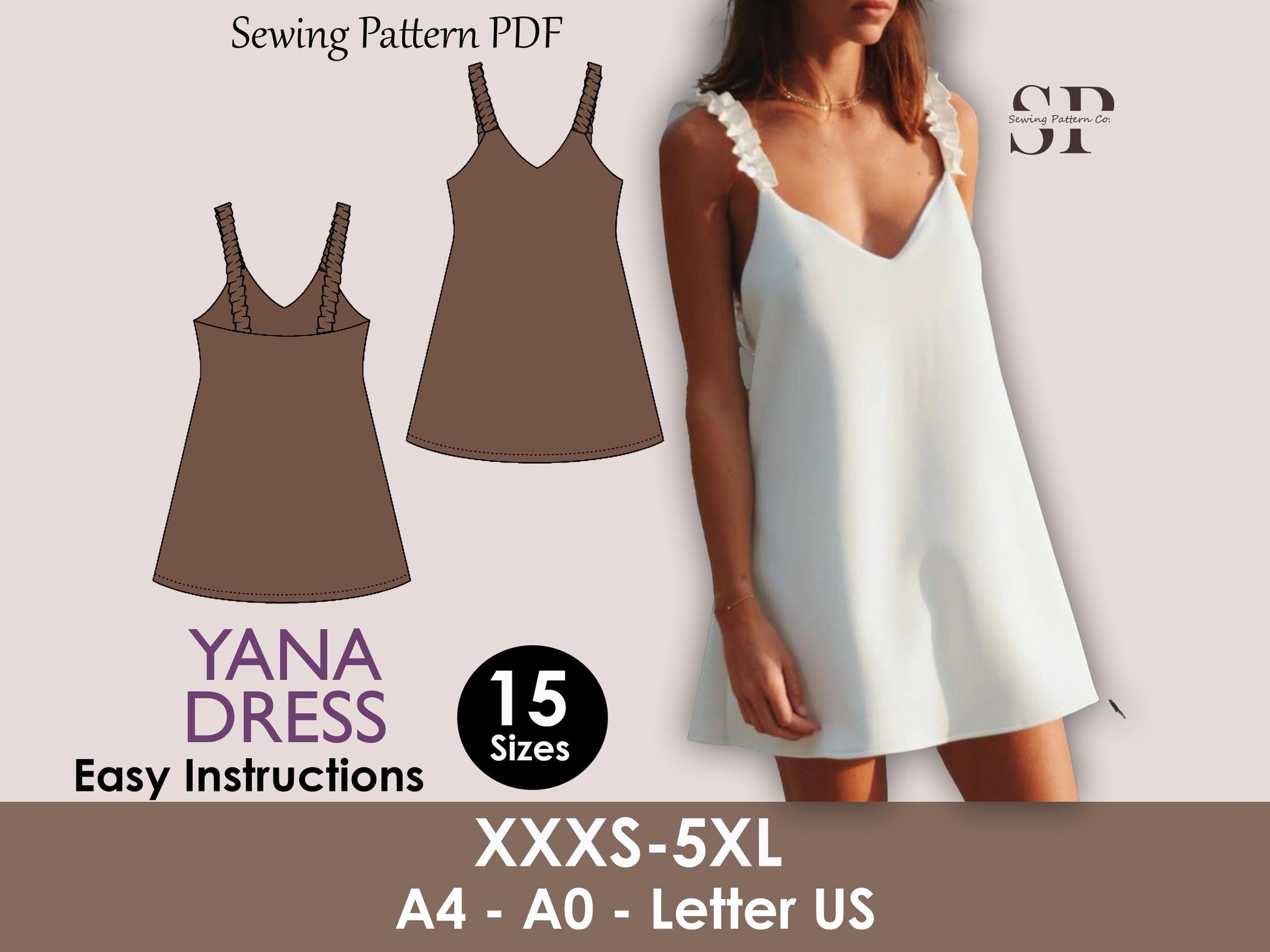 🌸 YANA Dress – Ruffled Strap Mini Dress | V-Neckline | Bustier Style | One Piece Sleeveless PDF Sewing Pattern | 15 Sizes