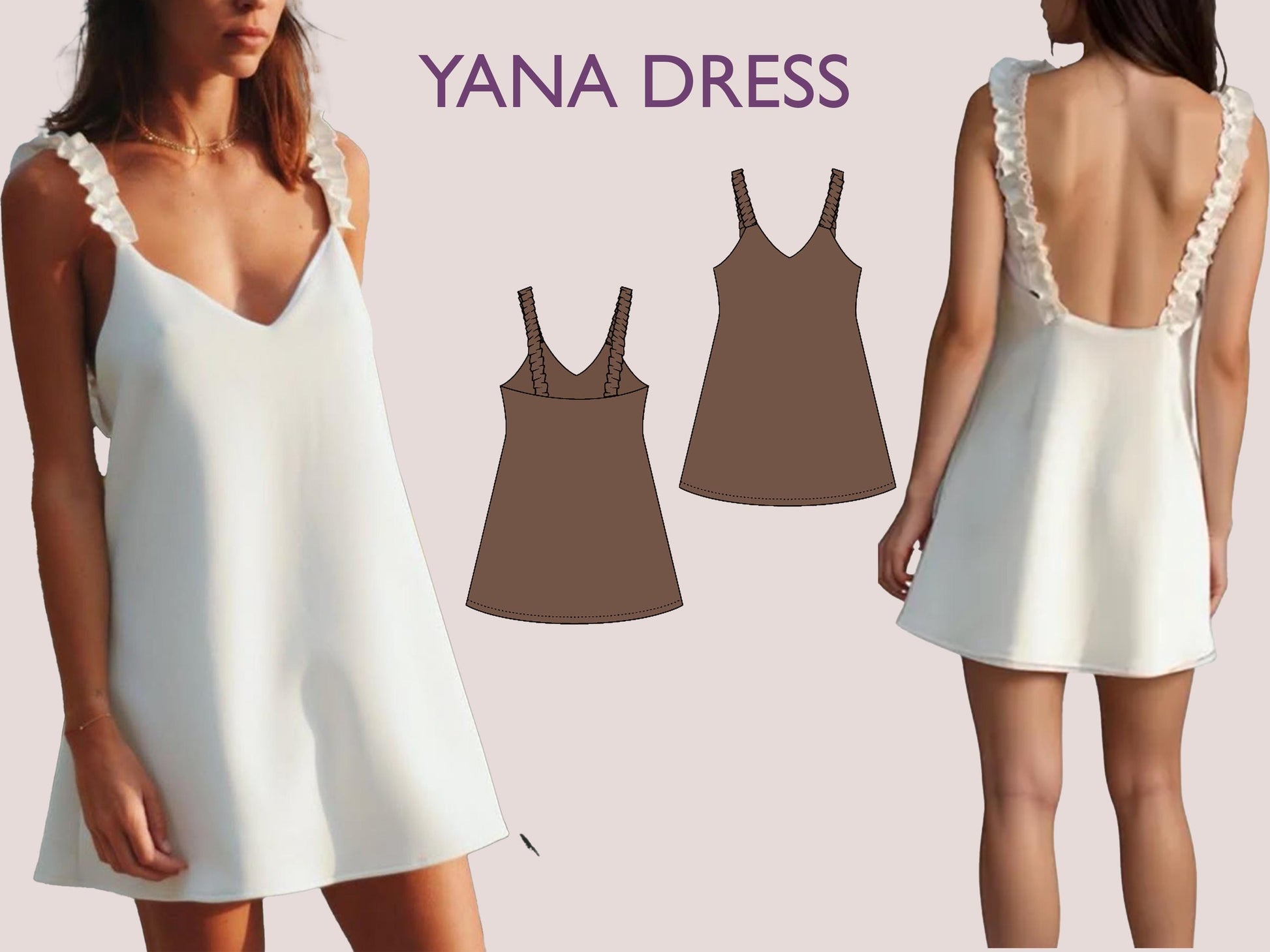 YANA Dress - ruffled strap dress | Bustier dress | Women dress pattern| one piece | V neckline dress| Sleeveless | sewing pattern pdf